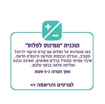 כסף גדל כשמנהלים אותו נכון לכן זהו קורס מעשי ועמוק כאחד, שנועד לתת כלים, תובנות וביטחון לכל מי שרוצה להפסיק לשרוד - ולהתחיל לנהל את הכסף שלו כמו שצריך.